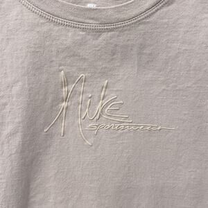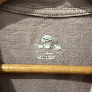 Light mauve/brown cropped tone on tone tshirt with Nike script logo. Nike swoosh on middle of back. Great condition, no stains or tears. Cropped boxy fit, measurements shown.