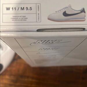Classic Nike design. White upper with black swoosh. Comfortable and stylish. Woman’s 11 men’s 9.5