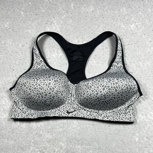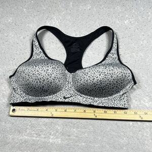 Up for sale: Nike DRI FIT Sports Bra Size 36B Gray Leopard Training Padded Racer Back
