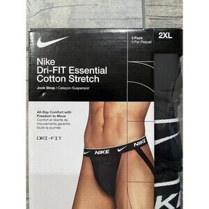 Nike DRI-FIT Essential Jock Straps Underwear Mens Black Size 2XL 3-Pack Cotton