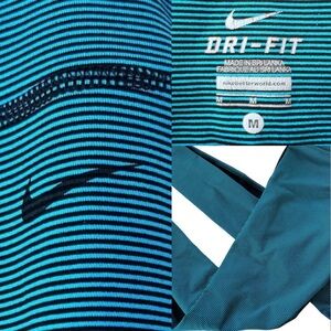 Nike DRI-FIT Fold Over Leggings in Blue and Black Stripe size Medium