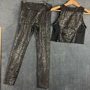 Nike DRI-FIT One Black/Gold Star Leggings & Crop Tank SET Girls Sz XL