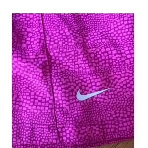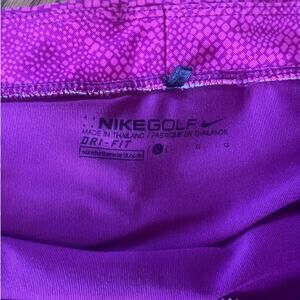 Nike DRI-Fit women's size L. Focus on your swing and let Nike Golf DRI-Fit handle the rest. Pink patterned knit. Mid-rise skirt with built-in liner shorts for added coverage and support. DRI-Fit technology wicks perspiration towards the fabric surface where it can evaporate. Waist 30", length is 14 1/2".