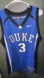 Nike jersey in vibrant blue. Features black collar and red logo. Reflective Duke Symbol along with stitched Nike Logo. The Duke Jersey displays #3 Beck along backside.