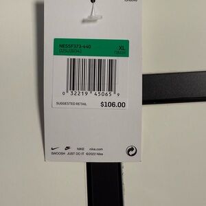 Chic dark blue swimsuit with vibrant patterned sides. Features Nike logo on front.
