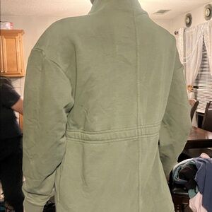 Comfortable dark green jacket with zip-up front. Features Nike logo and drawstring waist.