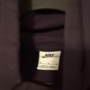 Nike hoodie in dark shade. Features iconic white logo. Cozy and modern design.