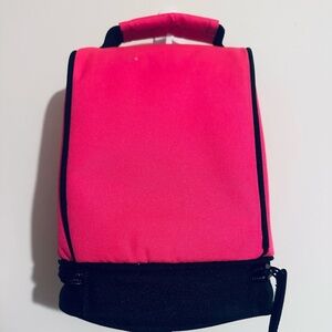 Stylish pink and black insulated dome lunch tote with iconic Nike logo. Perfect for daily use. Flat top handle with 2” drop. Bottom zipper with separate compartment and front zipper to open the main compartment. NWOT never been used, bought for my daughter at beginning of this school year and she ended up not needing it.