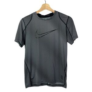Nike Dr-Fit Gray & Black Stripe Short Sleeve Athletic Top L