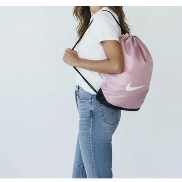 Nike Draw String Training Gym Sack Pink Black Backpack Bag Active