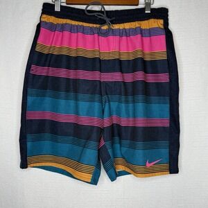 Nike Drawstring Multicolor Swim Trunks Mens Shorts XL Beach Boat Striped Logo