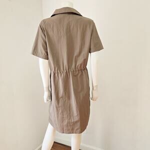 Nike, Everything Wovens, light brown, snap down mini dress with toggle waist, side pockets; can be worn as a jacket