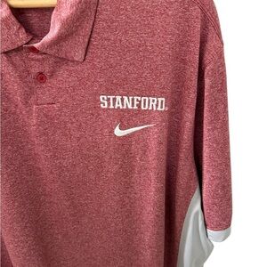 Nike Dri Fit 2 Button Stanford Men’s Golf Polo Shirt Size XXL 100% PolyesterVery clean and nice Nike shirt with The university Stanford on the front. It also says Elite embroidered on one sleeve. There is also a gray panel on each side of the shirt that allows air in.