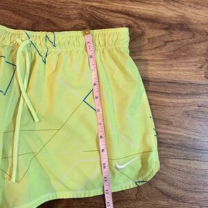 Nike Dri Fit 4" Inseam Running Lined Shorts Yellow Drawstring Womens Sz LG FLAW