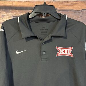 Nike Dri Fit Big XII Polo Shirt Large Grey Short Sleeve Golf Sports Embroidered
