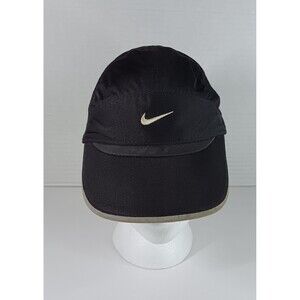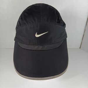 Nike Dri Fit Black Hat Cap White Logo Adjustable Mesh Athletic Running Unisex