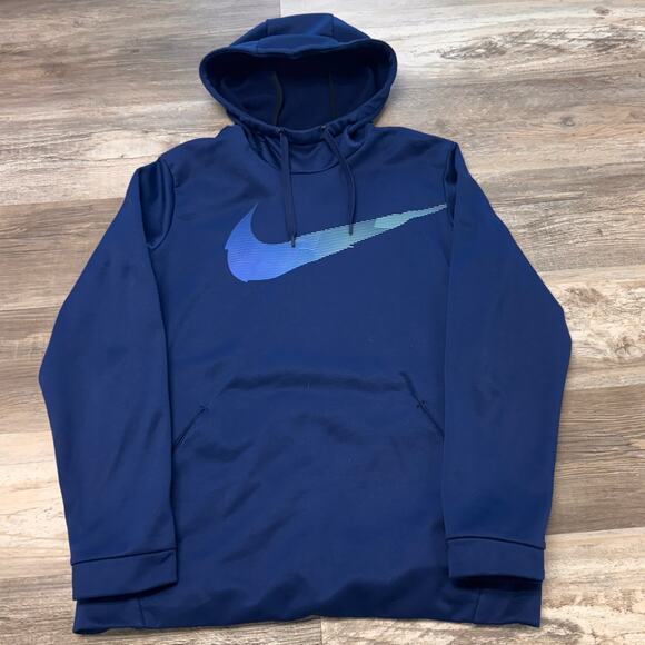 Nike Dri Fit Blue Mens L Athletic Big Swoosh Therma High Neck Pullover Hoodie