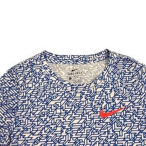 Nike Dri Fit Blue White All Over Geometric Pattern Shirt Size Youth Small (8)