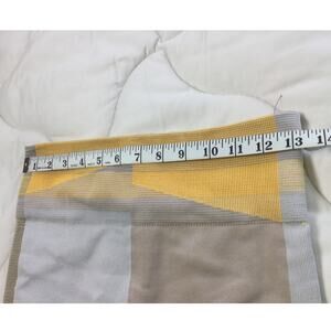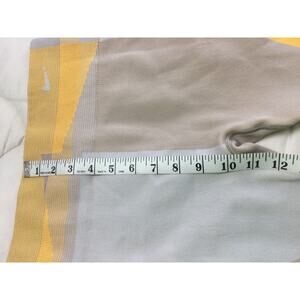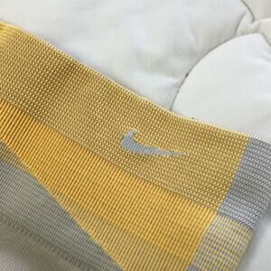 -Yellow/grey/white geometric pattern, nike swoosh embroidered in grey