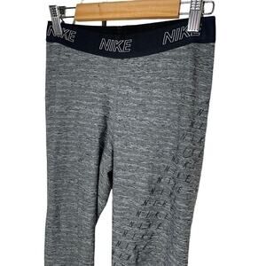 Nike Dri Fit Crop Athletic Leggings Womens Small Grey Black Logo Active