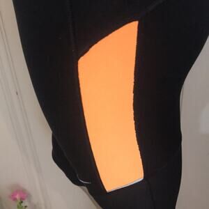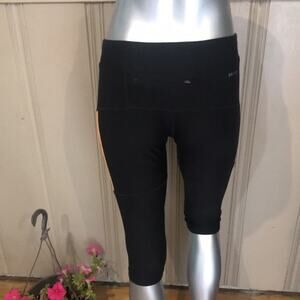 Nike Dri Fit Cropped Running Black Orange Leggings Back Zipped Pockets Women's Size S. Measurements: waist:14, rise: 7, inseam: 16