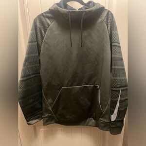 NIKE DRI-FIT men's Large Pullover Green Hoodie Big Swoosh Logo camo green in color