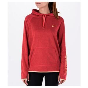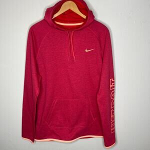Nike Dri Fit Hoodie XL Womens Red Funnel Neck Logo Spell Out Just Do It Athletic