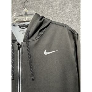 Nike Dri Fit Jacket Mens Large Black Hooded Full Zip Hoodie Swoosh Polyester. Condition is Pre-owned. Shipped with USPS Ground Advantage.