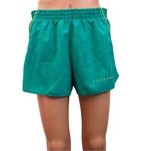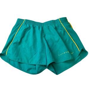 Nike Dri Fit Livestrong Turquoise Running Shorts Yellow Trim Drawstring waist