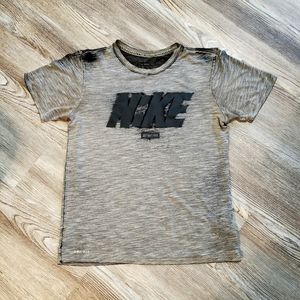 Nike Dri Fit Mens S Distressed Look T Shirt Crew Neck Grey Black Logo Stretch