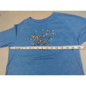 This Nike Dri-FIT Men's T-Shirt in size L features short sleeves, a crew neckline, and a blue color with a baseball diamond and sunflower seeds design. It is designed for athletic fit and is lightweight, breathable, and suitable for all seasons. The shirt is a part of the Nike Dri-FIT product line, making it ideal for outdoor activities and sports enthusiasts.