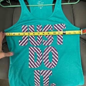Experience comfort and style with the Nike Green Sleeveless Tank Top, designed for a relaxed fit. This top features a classic racerback cut, perfect for active days or casual outings. Made from a soft fabric blend, it ensures breathability and ease of movement. No cracking or peeling at all. Like new condition