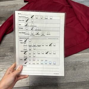 FLAW: Slight stain on front bottom edge and sleeve.