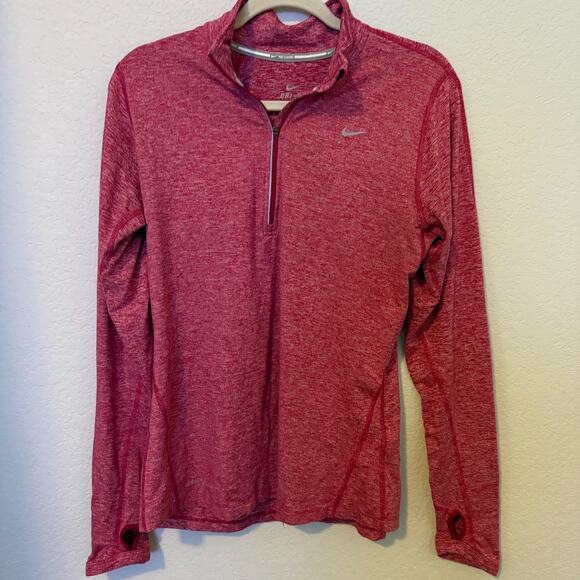 Nike Dri Fit Running Shirt Women's Medium Heather Red Full Sleeve 1/4 Zip LS