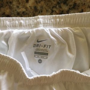 Size extra small Nike DriFit running shorts. Tags removed but never worn except for pics as shown. From smoke free pet free home. Shown on 5’4” tall model.