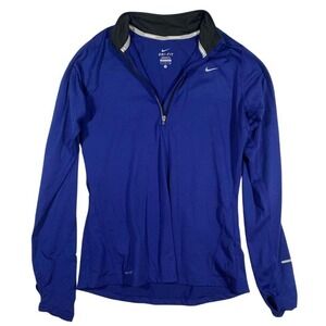 Keywords: Nike Dri-FIT, running top, long sleeve, half zip, pullover, womens, athletic, performance, blue, small, activewear, workout, sportswear