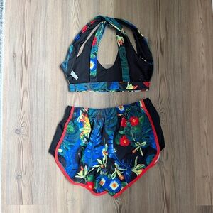 Vibrant pattern shorts and sports bra matching set