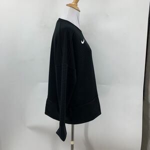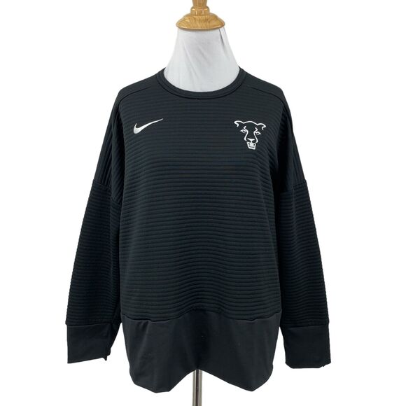 Nike Dri Fit Sweatshirt Womens L Large Black Ribbed Double Knit Crew Neck
