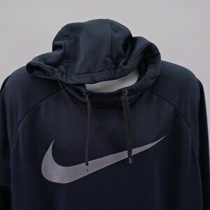 Nike Dri Fit Swoop Black Hooded Mock Neck Sweater 2XL Fleece Lined Pocket Front