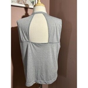 The Nike Dri-Fit Tank Top for women in XL size features a sleeveless design with an open back, making it perfect for activewear or casual occasions. This lightweight and breathable top in gray color with the Michigan logo on the front is a stylish addition to your wardrobe. Machine washable and made in Malaysia, this pullover tank offers comfort and style for the summer, fall, and spring seasons. The round neck and compression area on the back provide added support for a variety of activities.