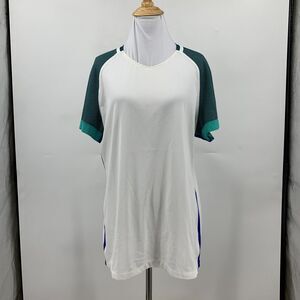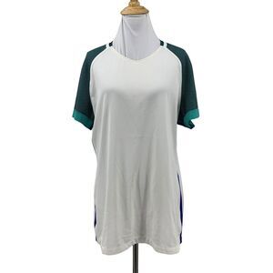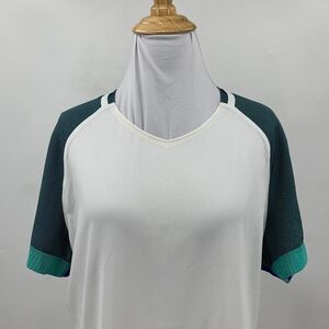 Nike Dri Fit Tee Women XL Extra Large White VNeck Colorblock Raglan Sleeve Shirt