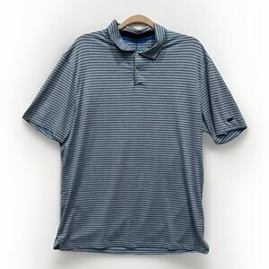 Nike Dri Fit Tiger Woods Mens Large Blue White Stripe Golf Polo Performance