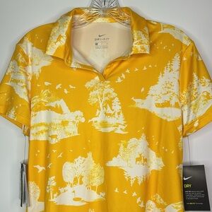 Nike Dri Fit UV Wildlife Print Yellow Polo Shirt Size Small NWT