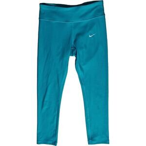 Nike Dri Fit Women's M Running Capris Cropped Green Teal Reflective Zip Pocket