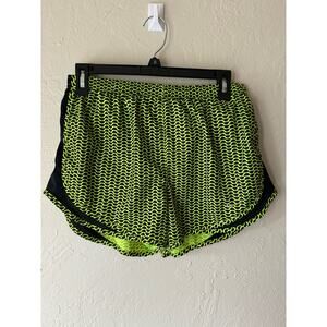 Nike Dri Fit Women's Shorts in Neon Green and Black Geometric Pattern, Size M
