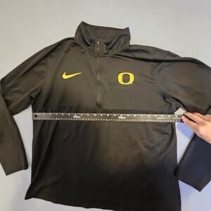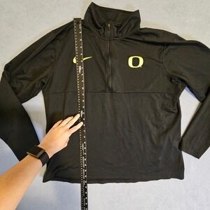 Keywords: Nike, Dri Fit, Oregon Ducks, Pullover, Jacket, Athletic, Activewear, Half Zip, Black, Yellow, XL, Women's, College Apparel, Sportswear