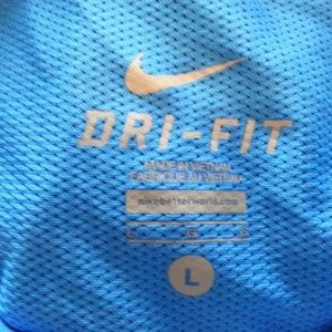 Nike Dri Fit blue short sleeve shirt with black trim - mens large - armpit to armpit = 21"