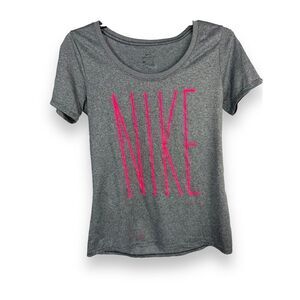 Nike Dri Fit heathered charcoal with large neon pink logo T-shirt