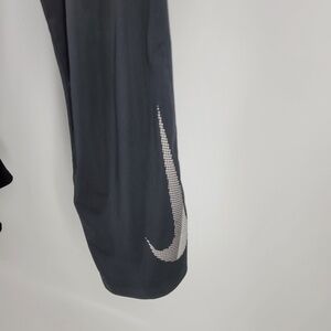 Nike logo at bottom of pants.