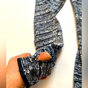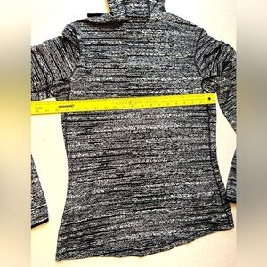 Nike fleece lined hoodie with swoosh logo on left arm. 88%polyester & 12%spandex.Drawstring hood.Pre owned in excellent condition. Sz-L color: black/grey/white